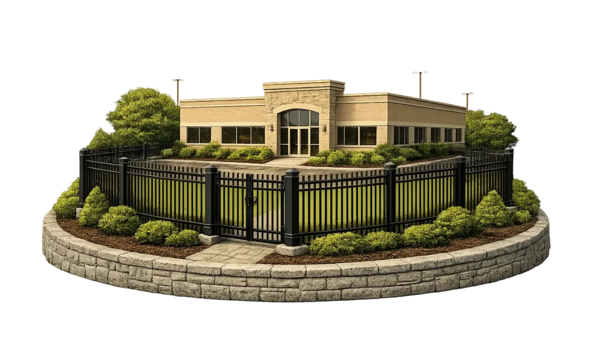 Ideal for offices, storefronts, and commercial properties that need a professional perimeter with reliable security. We build clean runs and solid posts for long-term performance.