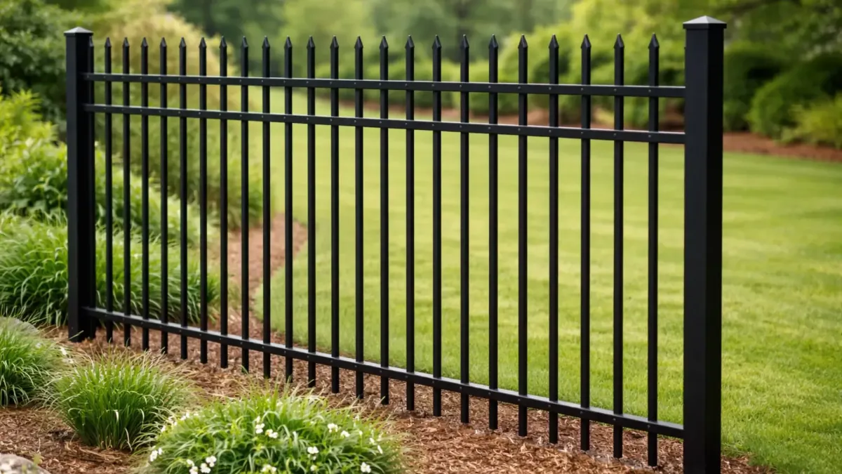 Ornamental iron fencing with spear-top pickets for a more secure, upscale look. A strong option for front yards and perimeters where added deterrence matters..